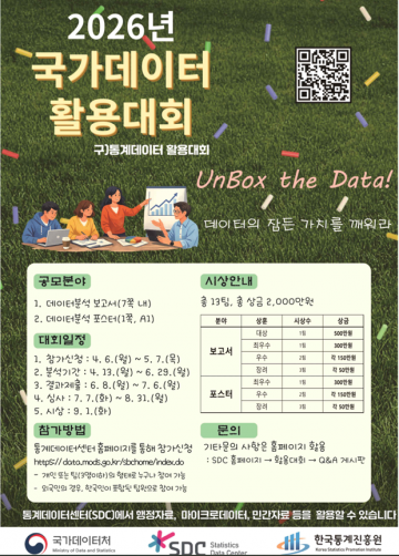 국가데이터처 관계자는 “이번 대회를 통해 국민들이 데이터 분석의 즐거움을 경험하고, 국가데이터가 우리 사회의 문제를 해결하는 강력한 도구가 될 수 있음을 확인하는 계기가 되길 바란다”고 전했습니다.